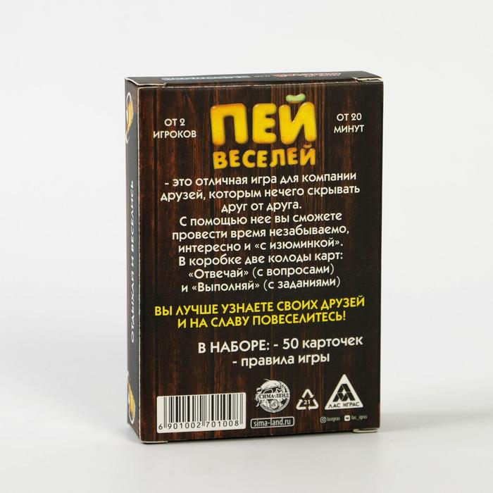 Купить игра для компании "пей веселей" 50 карт от 180 руб. с доставкой до пункта выдачи в Кондопоге. Интернет магазин ДекаМаркет. Оплата при получении.